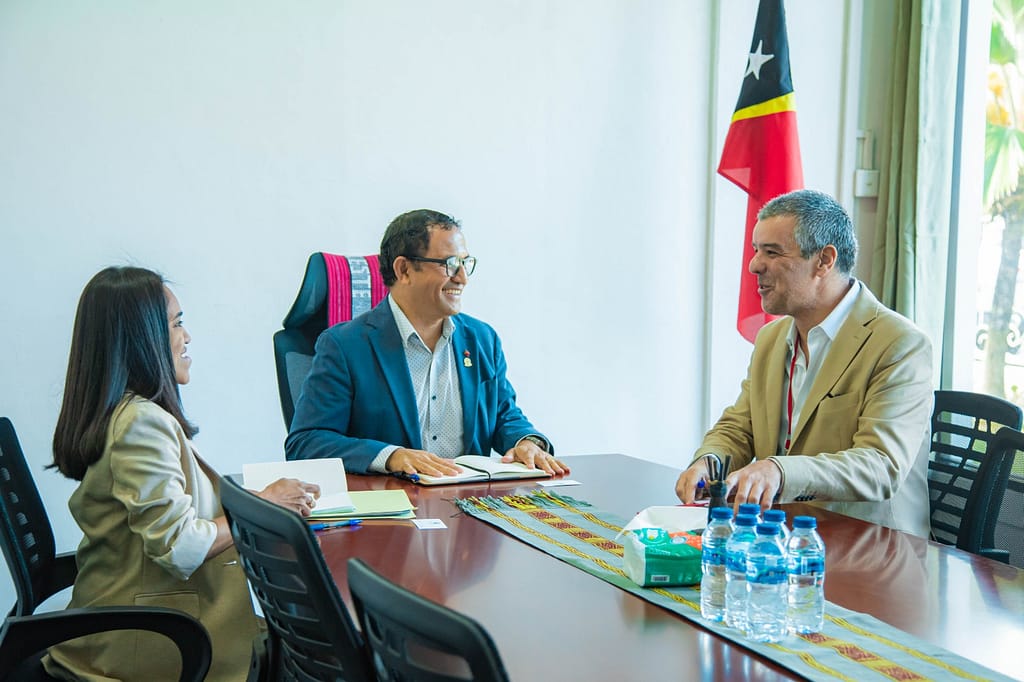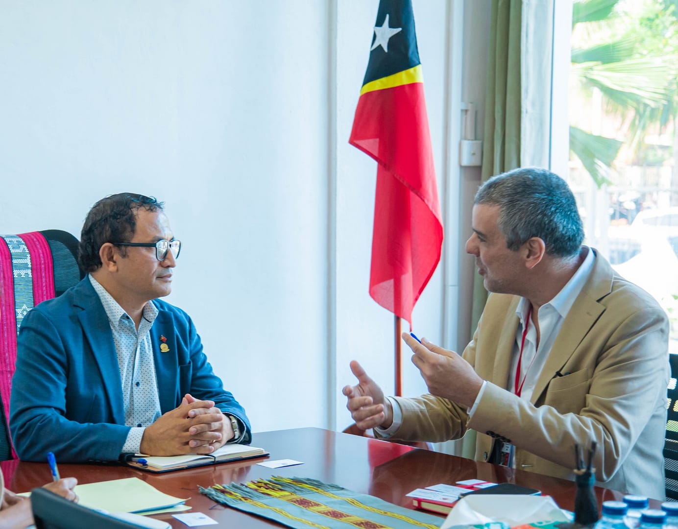 Sua Eselénsia Ministru Petréoleu no Rekurus Minerais, Francisco da Costa Monteiro simu Sua Eselénsia Embaixadór Portugal mai Timor-Leste, Duarte Bué Alves, ne’ebé troka Embaixadora, Manuel Bairos iha fulan Setembru tinan 2025.