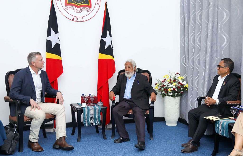 Kompaña Finder Energy atualiza investimentu kampu mina offshore – Jahal no Kuda Tasi ne’ebé prevé atu halo produsaun iha tinan 2027, ba Sua Eselénsia Primeiru Ministru, Kay Rala Xanana Gusmão ne’ebé akompaña husi Sua Eselénsia Ministru Petróleu no Rekursus Minerais, Francisco da Costa Monteiro.